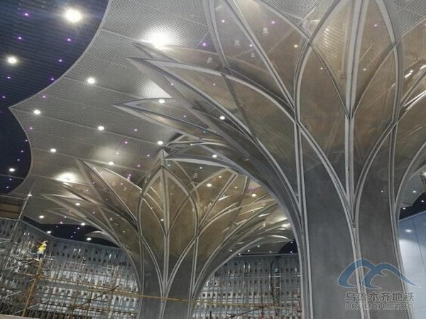 到達(dá)終點(diǎn)站國(guó)際機(jī)場(chǎng)站,親屬們看到站廳的雪蓮柱和盛開(kāi)的向上延展雪蓮花瓣、浩瀚星空的頂部,烘托出雪蓮迎賓的氛圍,不禁發(fā)出“太美了”的贊嘆。