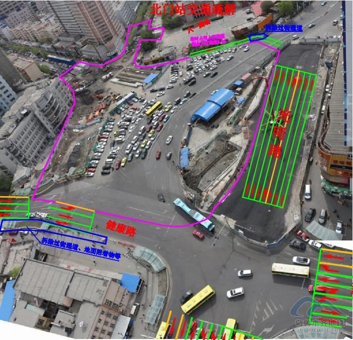 近期,北門(mén)站一期晨報(bào)大廈一側(cè)蓋挖施工區(qū)順利完成管線改遷及蓋挖作業(yè)施工,實(shí)現(xiàn)首期圍擋區(qū)域拆除還路。軌道交通1號(hào)線北門(mén)站是沿解放北路呈南北向布置,車(chē)站長(zhǎng)165.3m,寬21.3m,地下三層框架結(jié)構(gòu),12m島式站臺(tái)。該站位于解放北路、文藝路、光明路、新民路、青年路、健康路六條車(chē)道交匯處,人流、車(chē)流量大。按照市委、市政府的要求,為加快北門(mén)站施工進(jìn)度,在市交警支隊(duì)、交通運(yùn)輸局等單位的全力支持下,分別于2015年3月8日和2016年3月1日對(duì)北門(mén)站晨報(bào)大廈一側(cè)及解放北路段、文藝路路口進(jìn)行了全封閉施工。由于道路封閉后對(duì)該區(qū)域交通出行造成一定影響,市軌道辦、城軌集團(tuán)會(huì)同交警支隊(duì)、交通局優(yōu)化完善交通導(dǎo)改方案和公交車(chē)、BRT繞行方案,最大限度減少道路封閉對(duì)交通的影響,廣大市民也對(duì)此表示了極大的理解和配合。