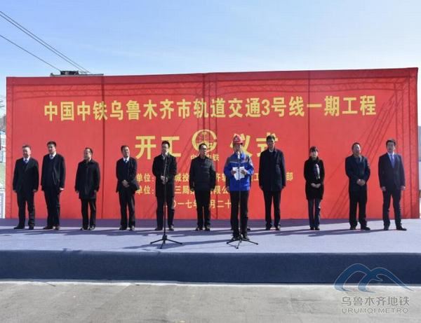 2017年3月22日,軌道交通3號(hào)線一期項(xiàng)目工程7個(gè)土建標(biāo)段在倉(cāng)房溝停車場(chǎng)出入段線舉行土建施工標(biāo)段聯(lián)合開(kāi)工儀式。這標(biāo)志著,軌道交通3號(hào)線一期土建工程全面開(kāi)工。2016年11月23日,軌道交通3號(hào)線一期工程正式簽署項(xiàng)目合作協(xié)議和股東協(xié)議并啟動(dòng)實(shí)施。該項(xiàng)目采取PPP模式,由烏市城軌集團(tuán)和中標(biāo)社會(huì)投資人中國(guó)中鐵股份公司共同組建特許經(jīng)營(yíng)公司,負(fù)責(zé)3號(hào)線一期工程建設(shè)管理及運(yùn)營(yíng)。