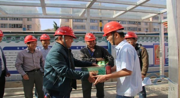 干休所慰問代表給明挖區(qū)間員工發(fā)放慰問品