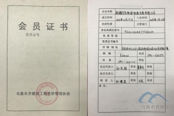 近日,新疆烏京鐵建軌道交通有限公司(以下簡(jiǎn)稱"特許公司")在市建委辦理入會(huì)手續(xù),正式成為新疆建設(shè)工程造價(jià)管理協(xié)會(huì)會(huì)員。