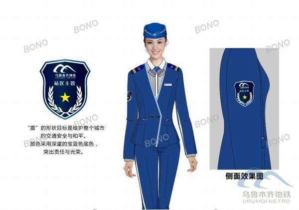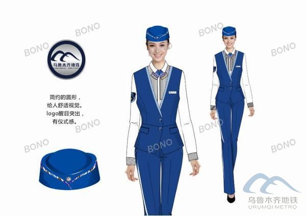 烏魯木齊地鐵職業(yè)服裝設(shè)計(jì)結(jié)合地鐵行業(yè)和烏魯木齊特有的地域文化特點(diǎn),將新疆民族特色的艾德萊絲綢花型融入到制服設(shè)計(jì)理念中,款式設(shè)計(jì)及面料選擇上考慮了軌道交通行業(yè)的特定需求及新疆的氣候條件。男士西服套裝為藏藍(lán)色,與領(lǐng)帶、帽子、顏色一致,搭配得體,親和力十足。女士西服為天藍(lán)色,活力十足,清新自然,艾德萊斯綢元素的領(lǐng)花和帽子細(xì)節(jié)相互呼應(yīng),體現(xiàn)新疆特色的同時,顯示出女性的婉約。運(yùn)營時市民將感受到身著制服、青春率性的“兒子娃娃”和“丫頭子”熱情周到的服務(wù)。