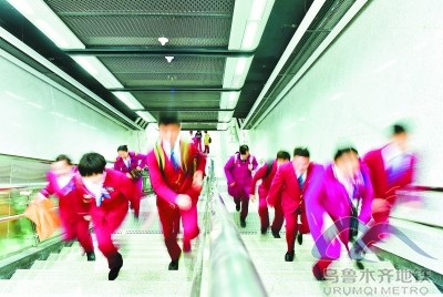 車(chē)站值班員們正在3號(hào)線范湖站進(jìn)行體能測(cè)試,測(cè)試從站臺(tái)跑到出口所需的時(shí)間。