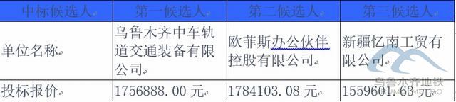 烏魯木齊城市軌道集團(tuán)有限公司、運(yùn)營(yíng)分公司辦公用品(低值易耗品)采購(gòu)項(xiàng)目中標(biāo)候選人公示