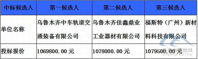 烏魯木齊地鐵咨詢有限公司受烏魯木齊城市軌道集團(tuán)有限公司的委托對1號(hào)線專項(xiàng)固資采購項(xiàng)目招標(biāo)的評審工作已經(jīng)結(jié)束,評標(biāo)委員會(huì)經(jīng)過評審后確定了本項(xiàng)目的中標(biāo)候選人,現(xiàn)將中標(biāo)候選人情況予以公示(時(shí)間從2020年12月30日至 2021年01月02日止),中標(biāo)候選人具體情況如下: