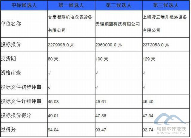 北京中昌工程咨詢有限公司受烏魯木齊城市軌道集團(tuán)有限公司的委托對(duì)烏魯木齊軌道交通1號(hào)線工程百園路車輛基地燃?xì)忮仩t改造項(xiàng)目的招標(biāo)的評(píng)審工作已經(jīng)結(jié)束,評(píng)標(biāo)委員會(huì)經(jīng)過(guò)評(píng)審后確定了本項(xiàng)目標(biāo)段的中標(biāo)候選人,現(xiàn)將中標(biāo)候選人情況予以公示(時(shí)間從2021年04月19日至 2021年04月22日止),中標(biāo)候選人具體情況如下: