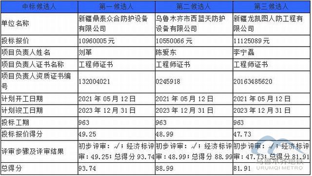 北京中昌工程咨詢有限公司受烏魯木齊城市軌道集團有限公司的委托對烏魯木齊機場北區(qū)改擴建工程市政配套(T4航站樓~機場東站)和烏魯木齊機場(北區(qū))改擴建市政配套工程(二期)人防防護設備供貨及安裝工程的招標的評審工作已經(jīng)結束,評標委員會經(jīng)過評審后確定了本項目標段的中標候選人,現(xiàn)將中標候選人情況予以公示(時間從2021年05月08日至 2021年05月11日止),中標候選人具體情況如下: